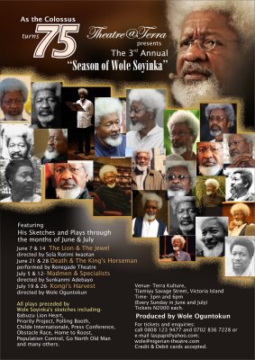 Wole Soyinka may not be an easy writer except for plays like Lion and the Jewel; but when his plays are well interpreted and acted, all that you have is an evening worth your while. Theatre@Terra presents the Season of Soyinka, even as the writer clocks 75 this year.