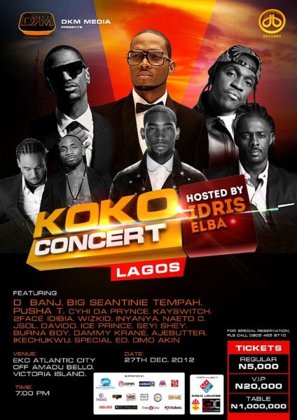 Don’t Miss D’banj, Kay Switch, Idris Elba, Pusha T, Big Sean & Tinie Tempah at the 2012 Koko Concert in Lagos | 27th December 2012