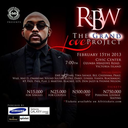 Banky W is throwing another Lagos party. And this time, it’s for the release of his hugely anticipated album R&BW. EME homeboys Wizkid, Skales, DJ Xclusive, and Shaydee are also on the bill, as well as first lady Niyola with special guests appearance by Don Jazzy and Yvonne Nelson as well as other special surprises.
