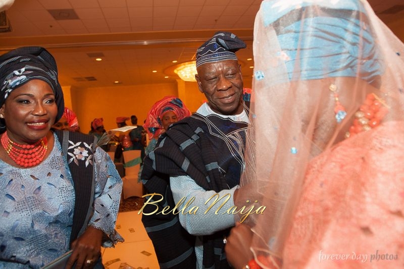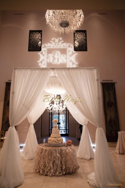 The wedding was elegance personified – planned by Shade Fatusin of A Conceal Affair, the brain behind many of Nigerians’ top weddings in the U.S. The blush, peach and coral tones were infused in the decor, bouquet and bridesmaids dresses. The bride and groom’s family shared in all their special moments, even as the bride was walking down the aisle to meet her groom, her sister, Moji Abiola sang a beautiful rendition of Maxwell’s ‘Whenever, wherever, whatever’.