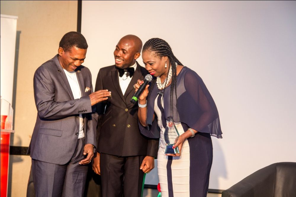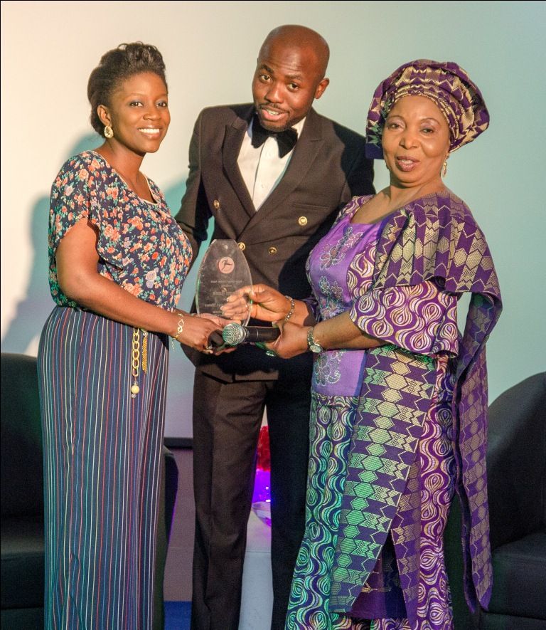 Mama Salami, Convener, GAME 2014, Abiola Salami & Onyeka Emenibah receiving an award on behalf of her Mother, Uchenna Erobu