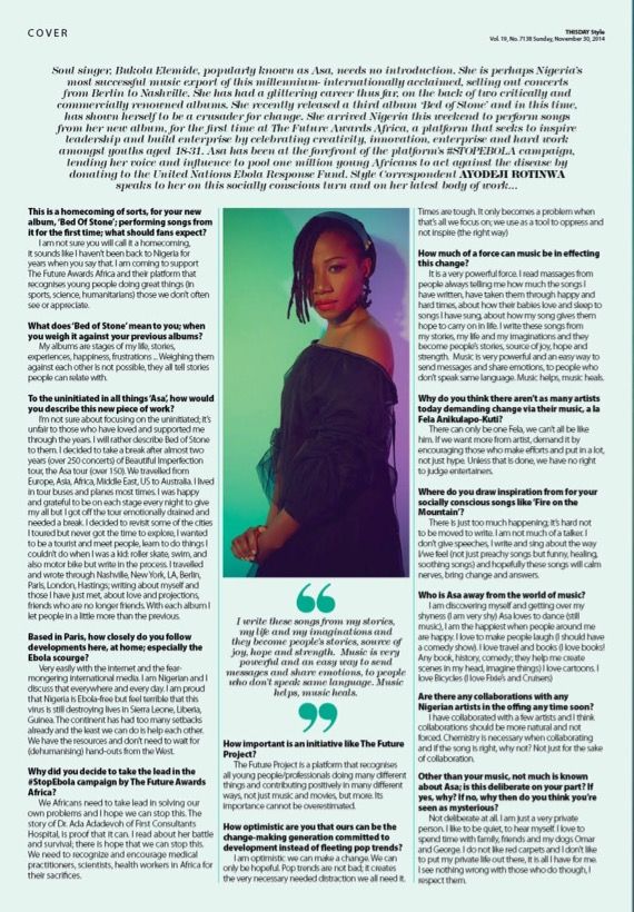 Africa’s biggest youth event, The Future Awards Africa (TFAA) 2014 has announced the performers for its 2014 edition; and from Paris, one of Africa’s biggest exports to the world, Asa is leading the pack.