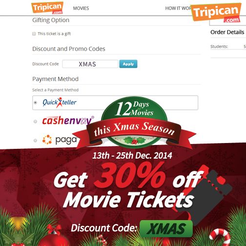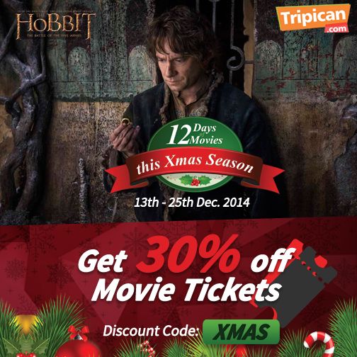 Get 30% off movie tickets this season! Promo starts from Thursday 13th – Thursday 25th December 2014.