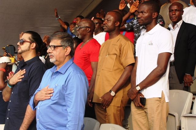 Amanju Pinnick (President of Nigerian Football Federation), Dr Tammy Wenike Danagogo (Nigerian Minister of Sports) & Sunil Sawhney (Managing Director of Seven Up Bottling Company)