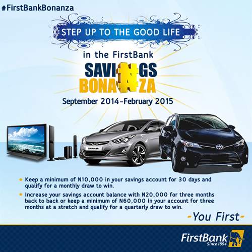 See www.firstbanknigeria.com/savings-bonanza for more details on how you can participate.