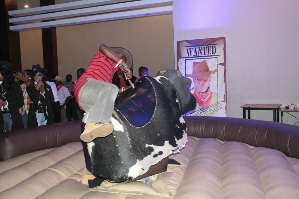 Before the main party was a cocktail party, with country music playing and staff having fun. There was also a rodeo bull and guests tried to show off their skills.