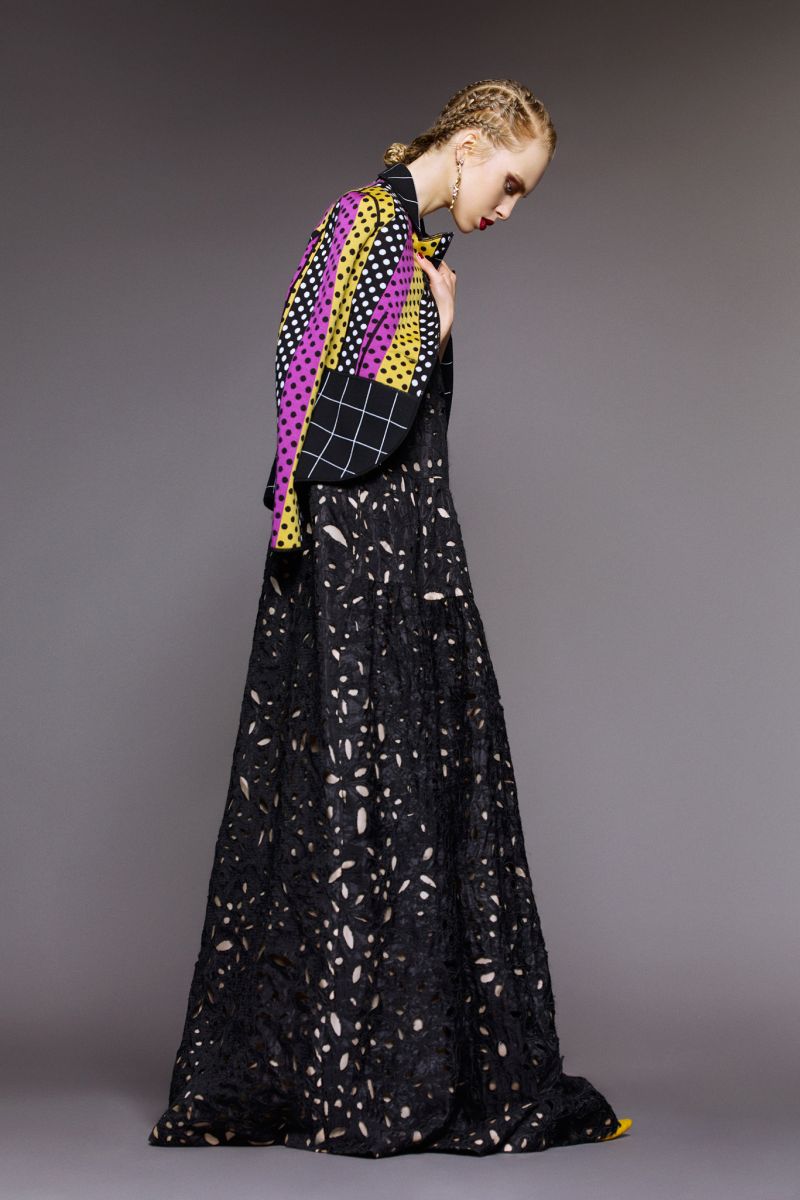 The collection is based off of Fauvist painter & avant-garde artist Kees van Dongen. According to Duro, “His paintings were second to none. This thing is, though, he never lost sight ofthe woman in his paintings. You always see the eyes“. He has applied that same principle in his latest collection, recreating the idea of kimono dressing, full skirts in black lace and silk taffeta, the voluminous and glam side of pastel brocade, formal shirt-dresses, bold strips and lots more.