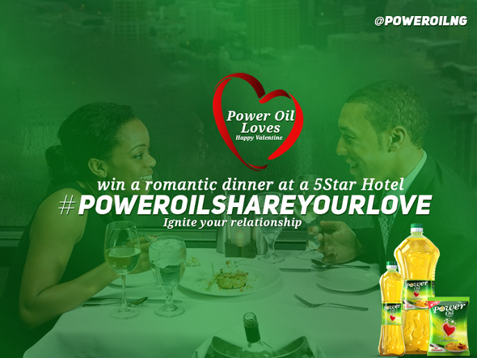The top three most voted submissions would be selected as the winning couples who would have a romantic dinner at a 5 Star hotel proudly powered by Power Oil Nigeria.