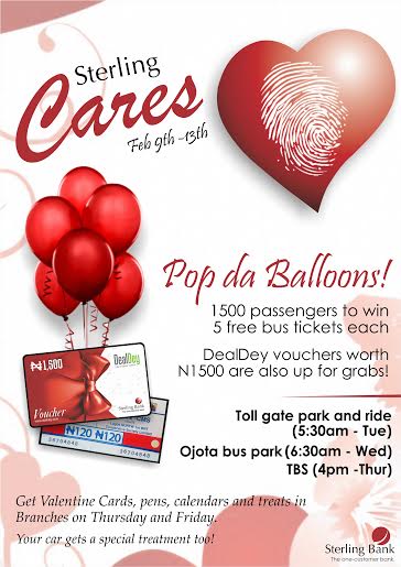 Your bank is giving back to its ‘One Customer’ this special season with the ‘Sterling Cares’ campaign from Monday 9th February 2015 to Friday 13th February 2015 nationwide.