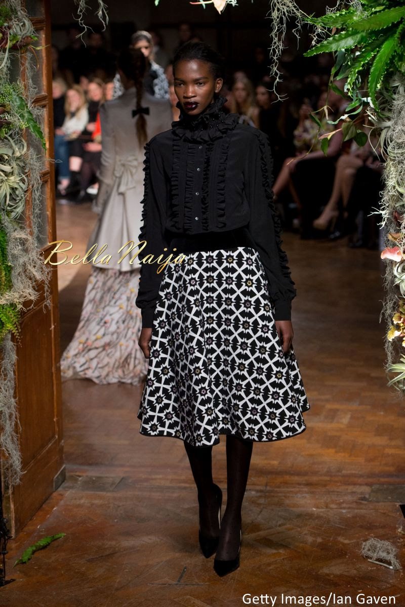 The Giles runway show at London Fashion Week was a mix of Grunge makeup and goth designs. Here, Aamito shared the runway again with Kendall Jenner and even took a few selfies backstage.