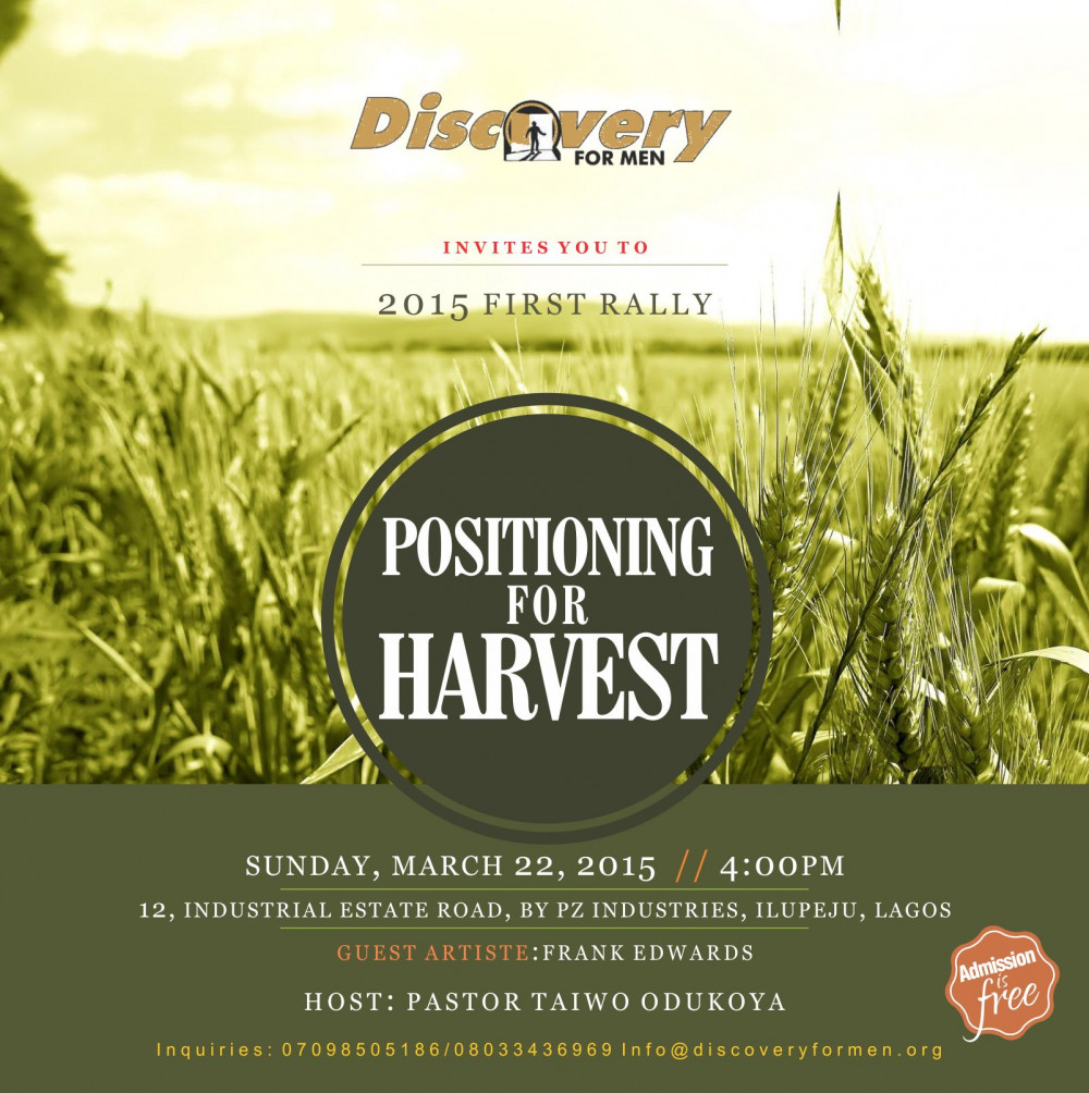 Discovery for Men rally is a large gathering of men in the Nigeria and this month they will be meeting for ‘Positioning for Harvest’