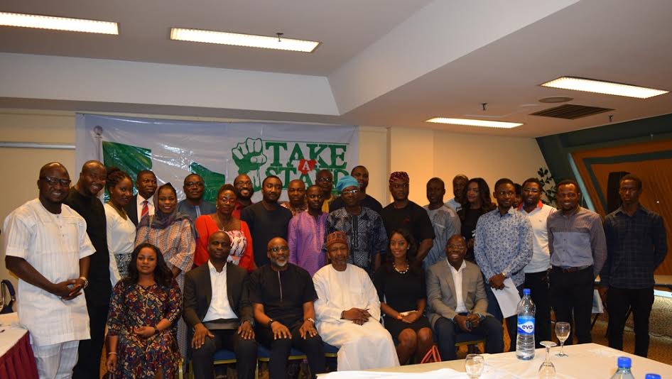 “Take A Stand”, powered by the Nigerian Professionals Coalition (NPC), was born out of the urgency to get Nigerians to stop sitting on the side-lines and get involved in creating a truly dynamic Nigeria. Earlier in February 2015, a Press Conference was held in Lagos state to introduce the initiative. Among the first course of actions was the scheduled discourse in Abuja to get essential stakeholders involved in the initiative process.