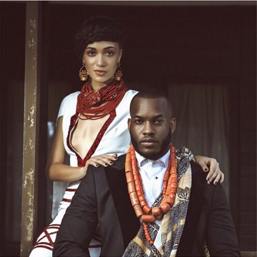 Eku wears Iconic Invanity S/S15 dresses complete with coral & other types of beads and a braided hairstyle; while Lynxxx is dapper in a black blazer, traditional wrapper and coral beads.
