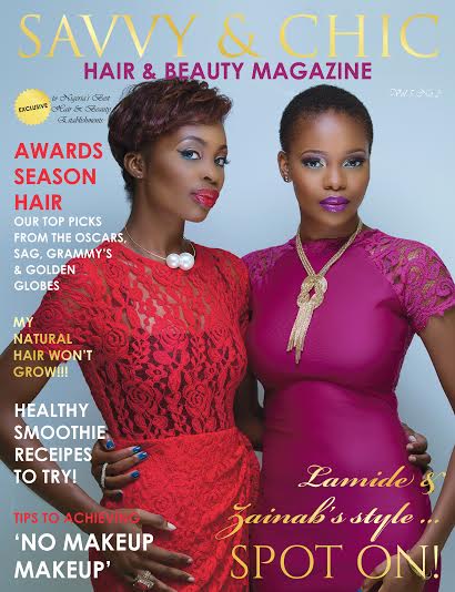 The ladies of Ebony Life TV’s ‘The Spot’ – Lamide Akintobi & Zainab Balogun – are looking uber-pretty on the cover of quarterly magazine, Savvy & Chic Hair & Beauty.