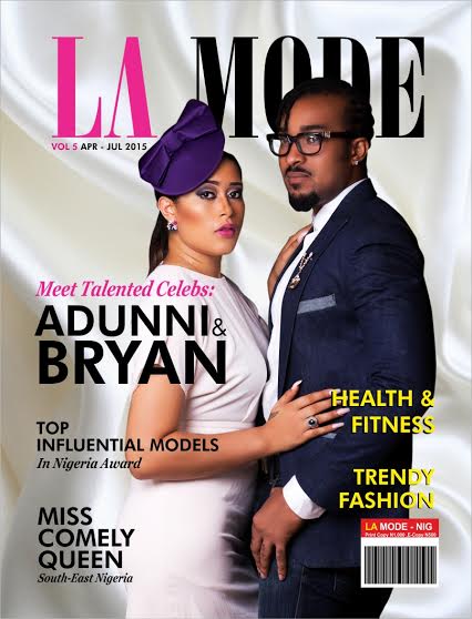 Rising actress & comedian Adunni Ade and former Mr Nigeria & actor Bryan Okwara make a lovely pair on the new issue of La Mode magazine themed “Trendy Fashion“.