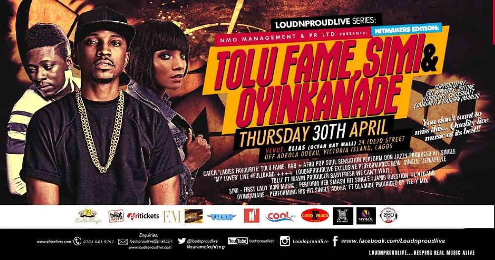 LoudNProudLive Series presents a ‘Hit Makers’ Special Edition with headliners Tolu (of Project Fame), Simi and Oyinkanade.