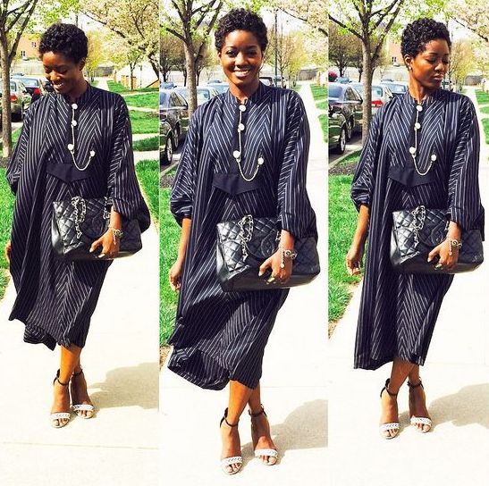 GEJ-Inspired? Rising Singer Tonye in Pin-Striped Shirt Dress by MAI