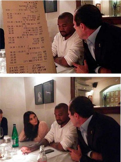 On a recent trip to Jerusalem, Kim Kardashian & hubby Kanye West, joined the mayor, Nir Barkat for a meal – an event covered by an Ultra-Orthodox Israeli website – Kikar HaShabbat. When publishing the article, the magazine cut out Kim K’s image from a photo of her with Kanye and the Mayor, covering her original placement with a receipt from the restaurant.
