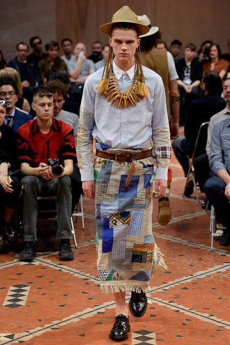 At the Paris Men’s Fashion Week 2015, menswear designer – Junya Watanabe debuted an African-inspired Spring/Summer 2016 collection that raised eyebrows and brought a lot of attention to his showcase. With white male models dressed in traditional style outfits accessorized with necklaces featuring dried bones, spears, masks etc, African textile wraps, Massai collars and rocking locs and cornrows, the collection seemed like a referral to the days of colonialism.