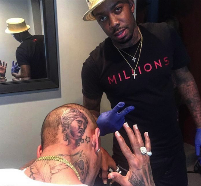 If you’re a fan of body tattoos, we’d like you to weigh in on Chris Brown‘s latest addition – an image of Venus de Milo at the back of his head.