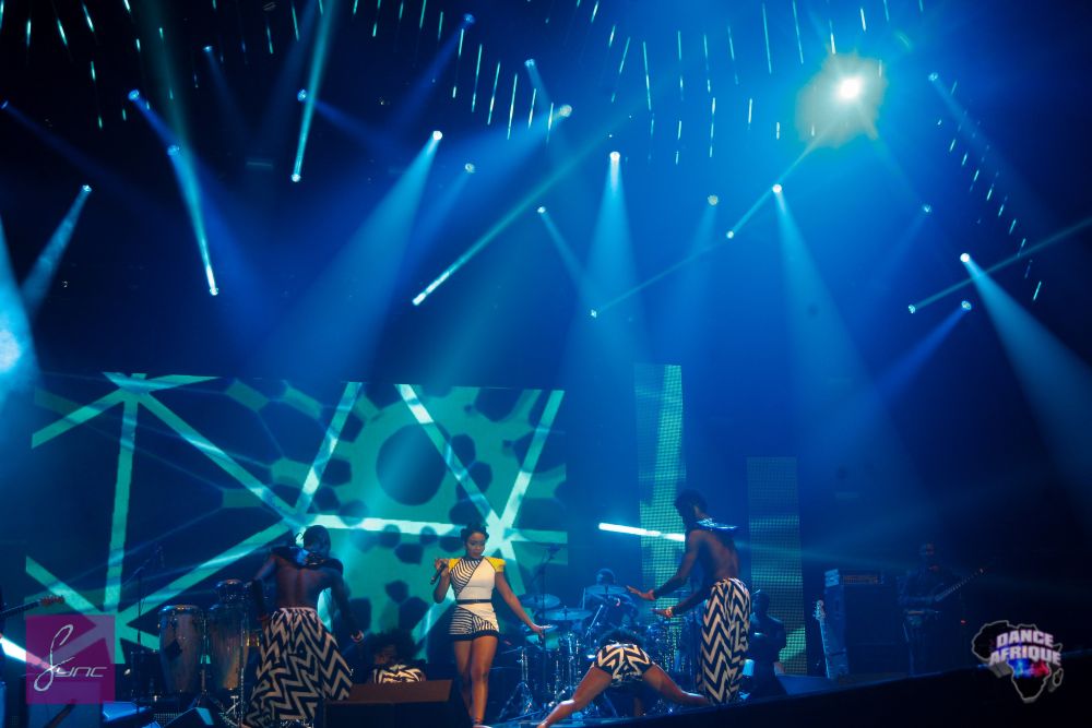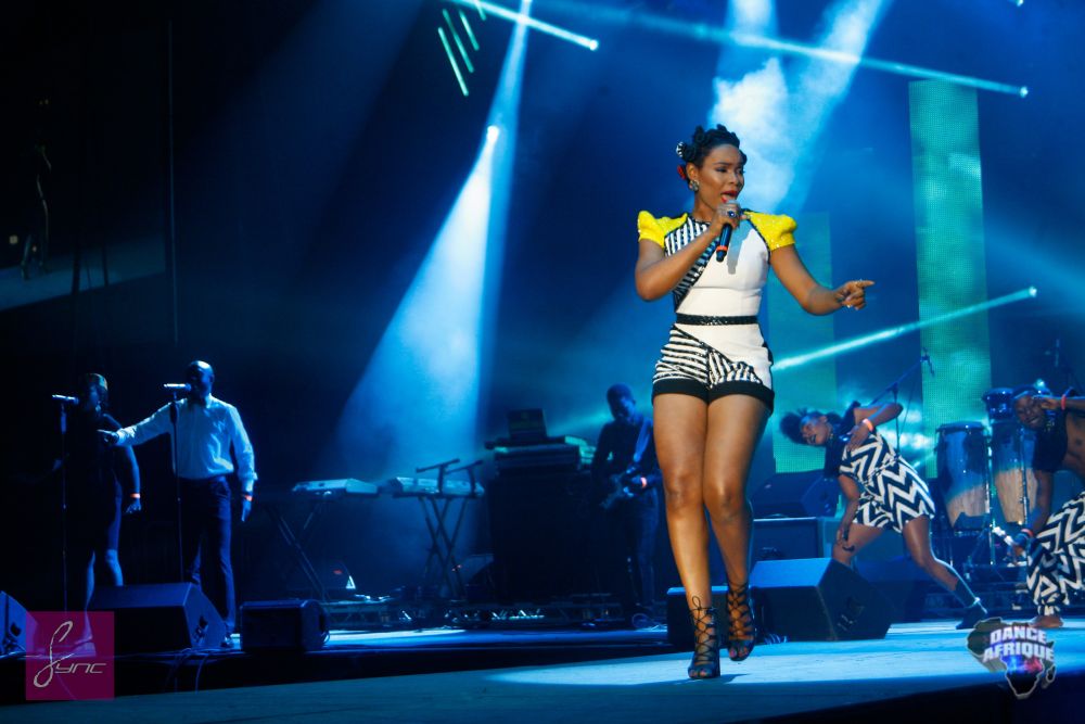 The afro-pop singer performed live at the Dance Afrique Summerfest 2015 concert in Wembly Arena, London, and looked stunning in a geometric print yellow, black & white playsuit made specially for her.
