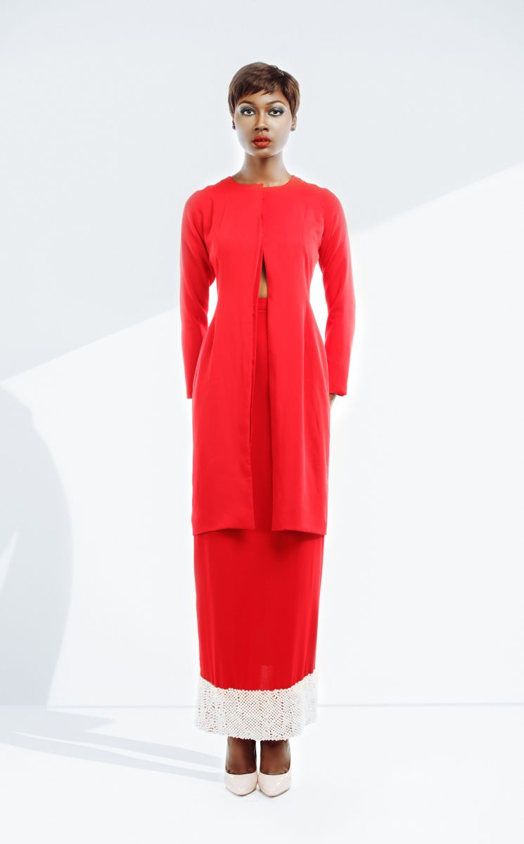 According to the designer, Nura Ikahlea – “As a purveyor of all things minimal, for our Resort 2015 collection we sought out to explore around the “Ambiguity” stitched to the concept of “Minimalism”. As against popular belief that minimalism, which is also another form of reductionism, strips elements down to its barest leaving them stated & boring, we thought to incorporate a bit of glamor, inject colors and create designs that expose the clichéd concept of minimalism as an ambiguous one. One which is a canvass for all other things to come into being.“