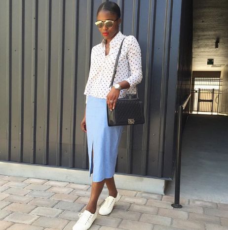 Although I think running shoes are not necessarily appropriate for the workplace, this look by Ranti Onayemi from Ranti in Review is definitely appropriate for a causal work day, social event or a relaxing outfit for Fridays.