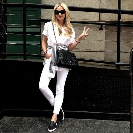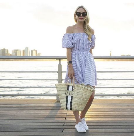 If you’re spending your day exploring your neighbourhood park, going for a long stroll or visiting a landmark, and want to be as stylish as possible, do what Blair Eadie from Atlantic Pacific did. Match your sporty flats with a trend-appropriate off-shoulder dress and get moving.