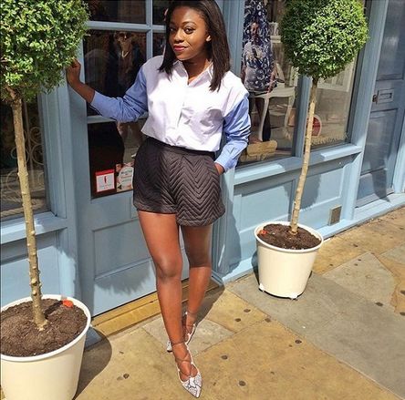Check out Fisayo Longe of Mirror Me in her sharp shirt and textured balloon shorts rocking flat lace-ups in snake skin.