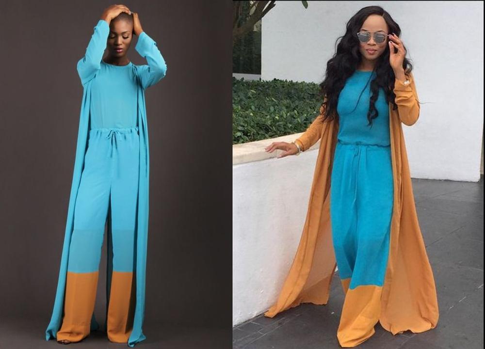 The brand launched its Resort 2015 collection with Eva Alordiah as its face in March this year. One of those pieces debuted was a blue & orange top & trouser set with a flowing blue kimono to match.