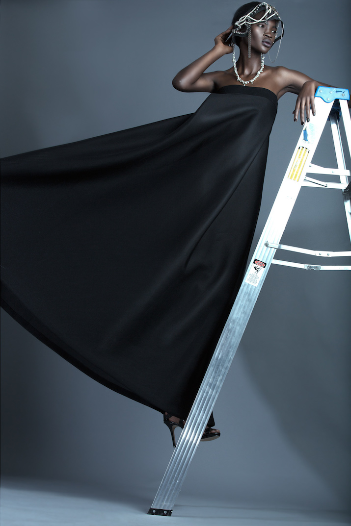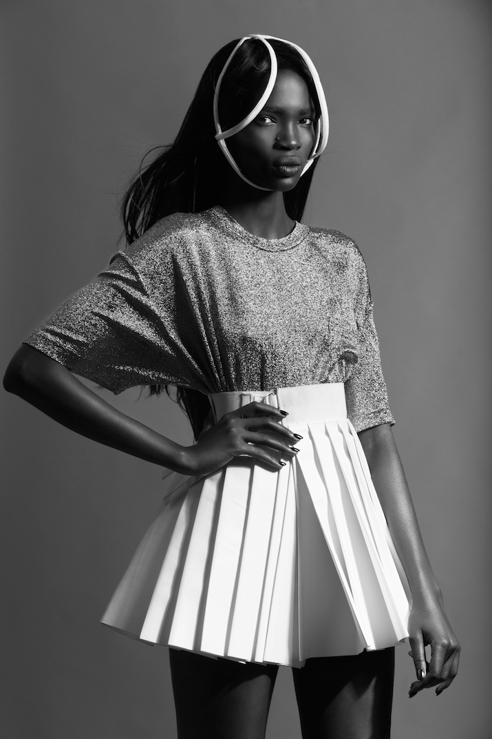 In the shoot we see Aamito in eccentric head wear by CoutureMask, structured skirts, faux fur pieces and more, with amazing photography by Remi Adetiba.