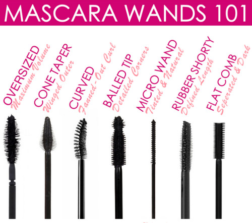 The image above shows the different mascara brushes and how they can be used. Here’s some more information about each brush: