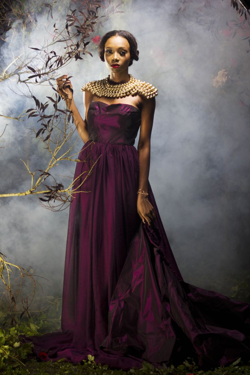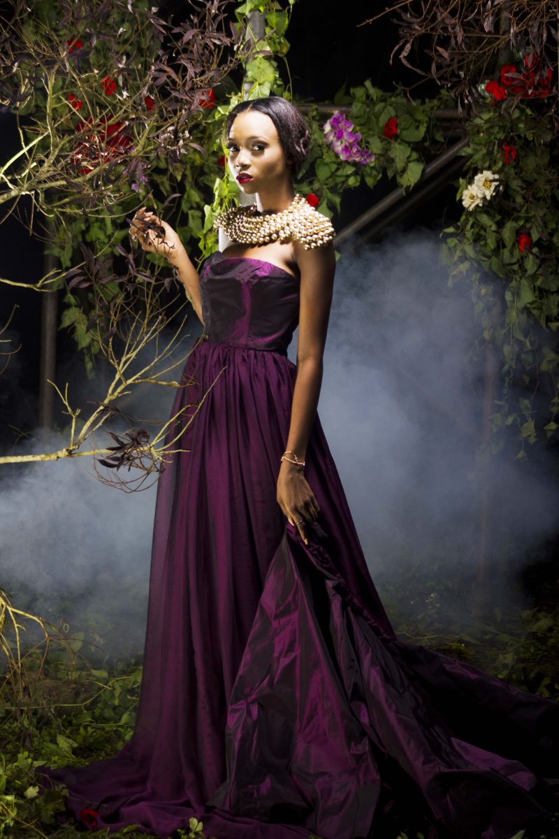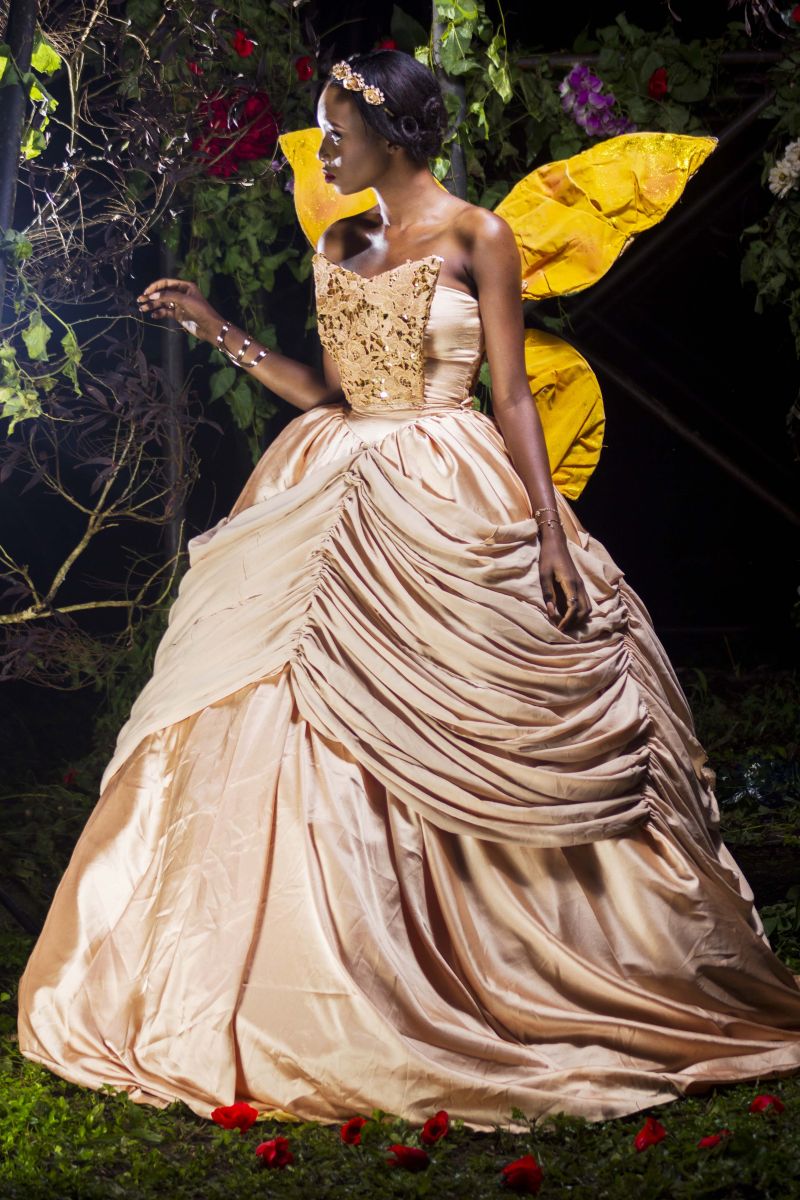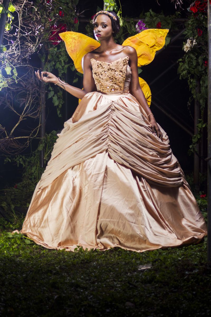 The movie inspired the creative director, Sheye Oladejo, to explore creativity and the details in historical fashion culture during the medieval era, Celtic tradition & British folklore. This helped her envision unique, alluring and enchanting pieces showcasing the beauty of the ‘Royal Fairy’. Fabrics such as taffeta, charmeuse, brocade, cord lace, sequins and more were used to design ball gowns, draping dresses and more with dainty accents like floral headbands, fairy wings, statement ‘backlaces’ etc.