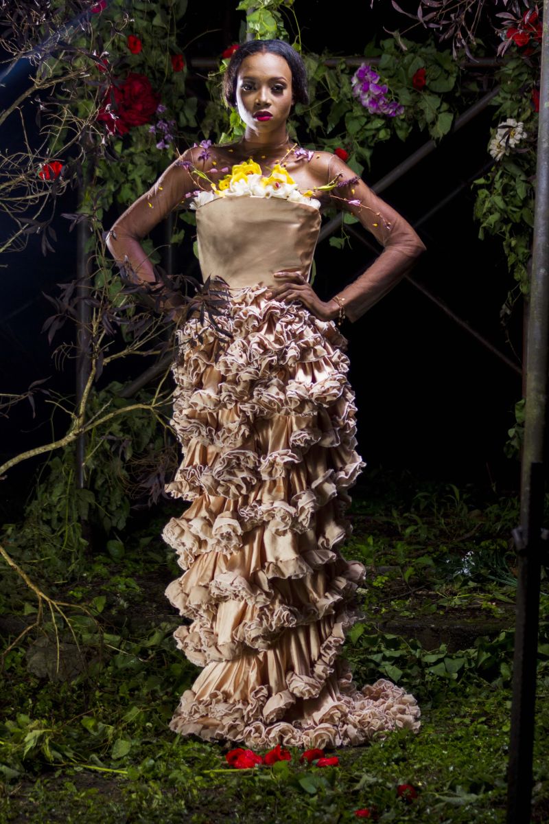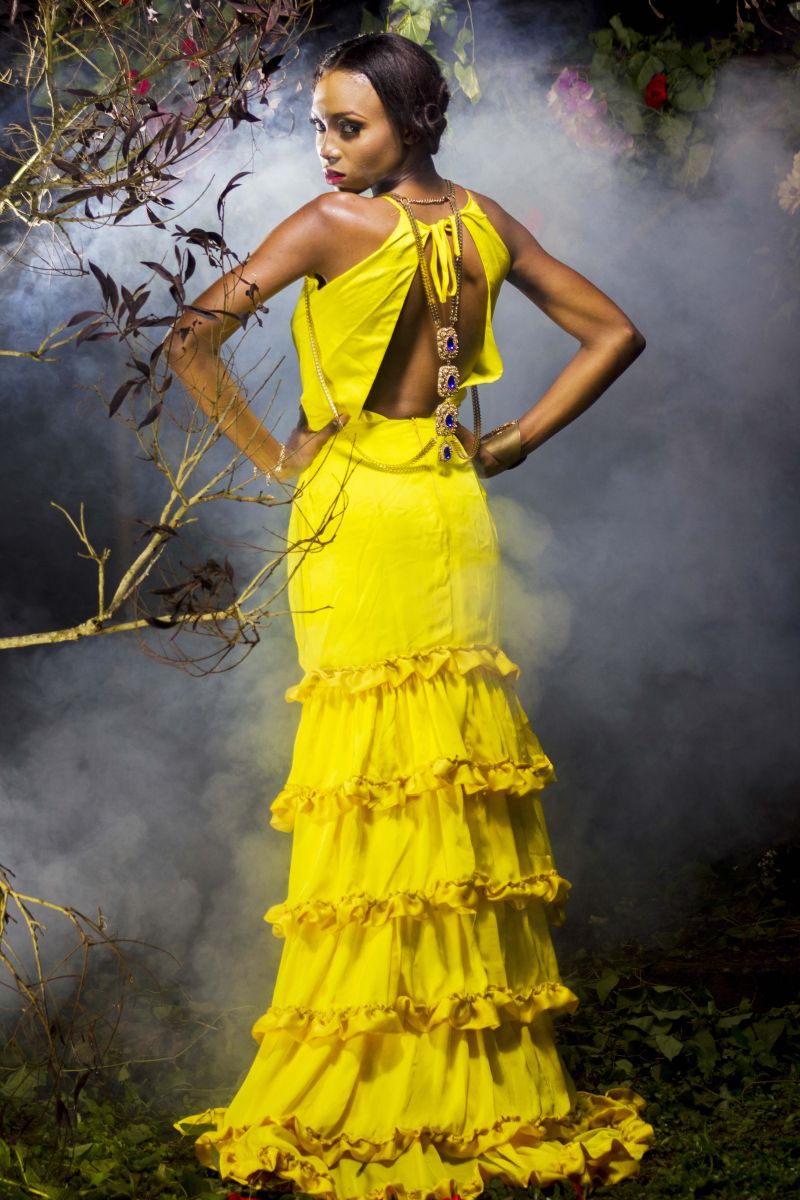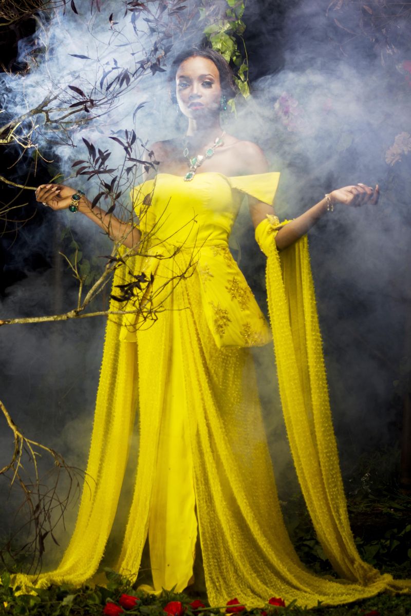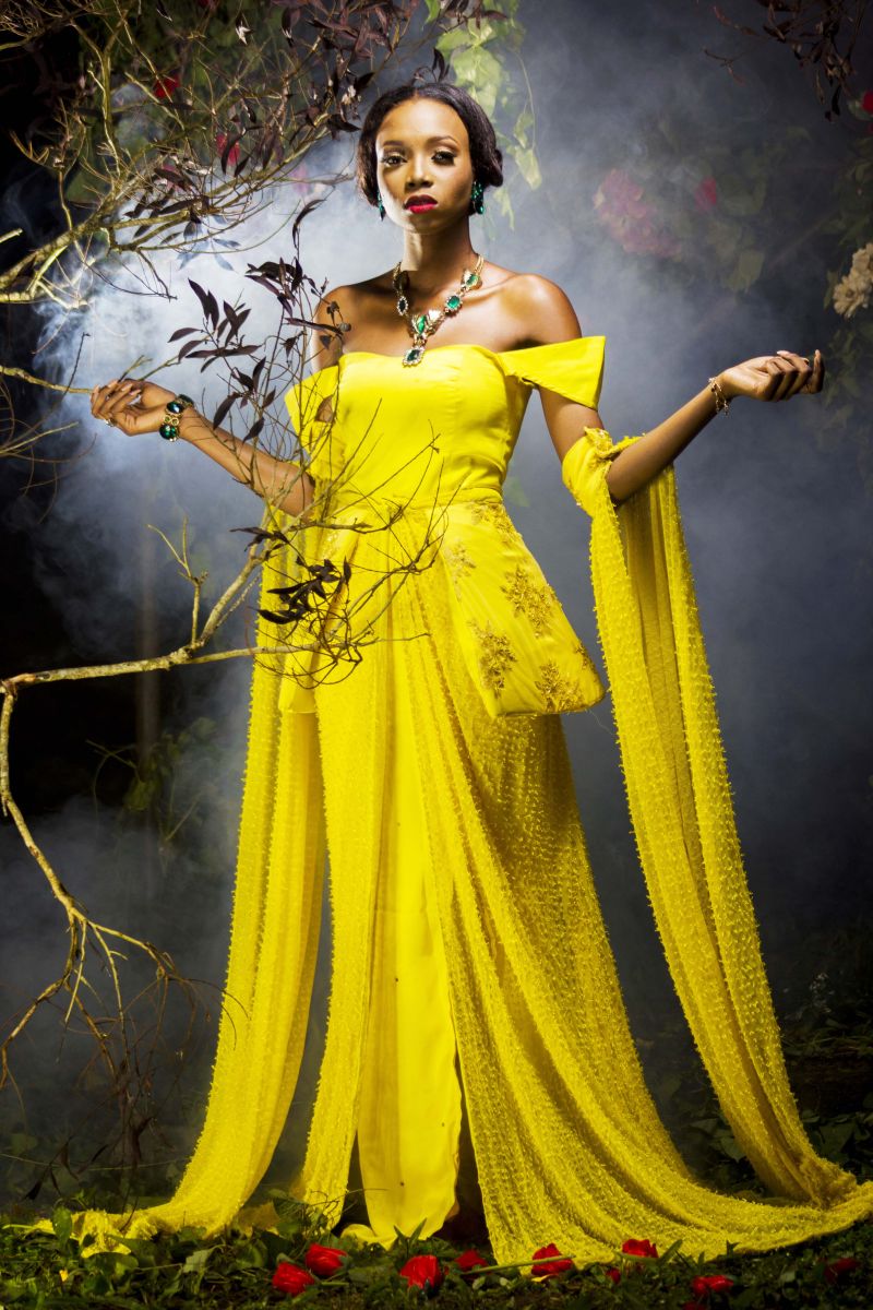 The movie inspired the creative director, Sheye Oladejo, to explore creativity and the details in historical fashion culture during the medieval era, Celtic tradition & British folklore. This helped her envision unique, alluring and enchanting pieces showcasing the beauty of the ‘Royal Fairy’. Fabrics such as taffeta, charmeuse, brocade, cord lace, sequins and more were used to design ball gowns, draping dresses and more with dainty accents like floral headbands, fairy wings, statement ‘backlaces’ etc.