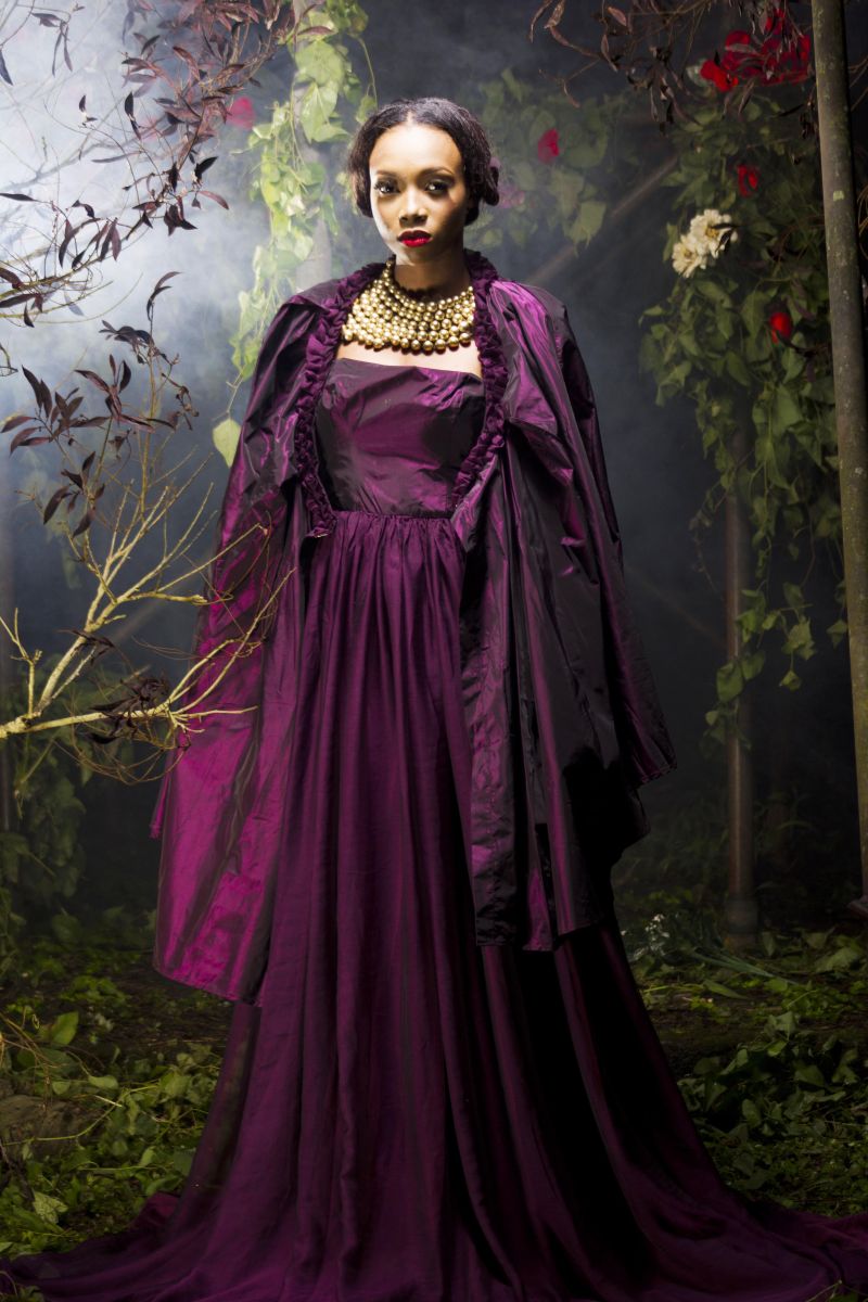 The movie inspired the creative director, Sheye Oladejo, to explore creativity and the details in historical fashion culture during the medieval era, Celtic tradition & British folklore. This helped her envision unique, alluring and enchanting pieces showcasing the beauty of the ‘Royal Fairy’. Fabrics such as taffeta, charmeuse, brocade, cord lace, sequins and more were used to design ball gowns, draping dresses and more with dainty accents like floral headbands, fairy wings, statement ‘backlaces’ etc.