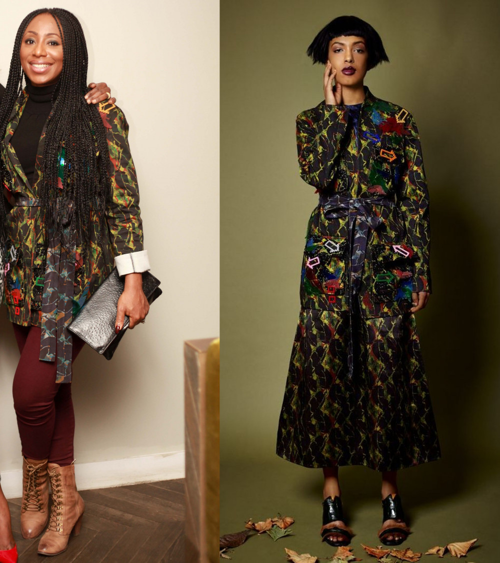 Joining a long list of celebrities, both home and abroad, who love the brand’s key aesthetics is Nollywood actress, Dakore Akande. She attended the British Council pre-premiere of new movie “Fifty“ in which she stars along Omoni Oboli, Ireti Doyle and more, in a piece from Lisa Folaiwyo’s latest collection for A/W 2015 (click here if you missed it) – a leaf print jacket. She paired the statement piece with a black turtle neck sweater, long braids, a pair of wine pants and brown booties.
