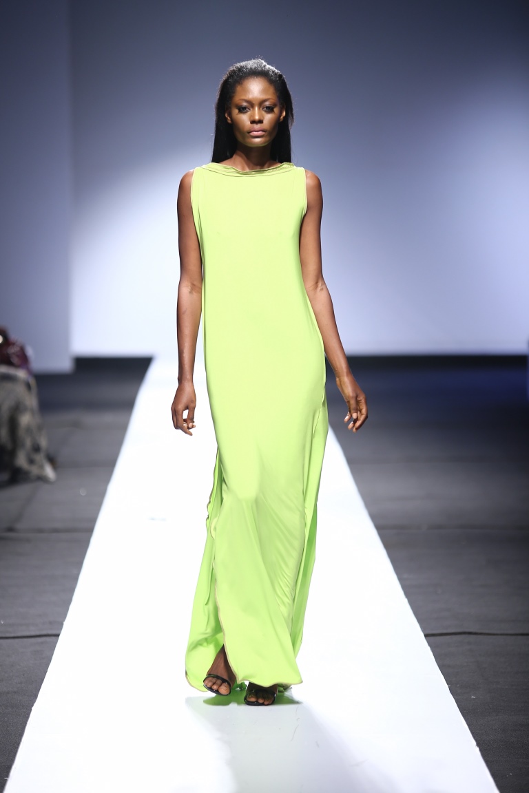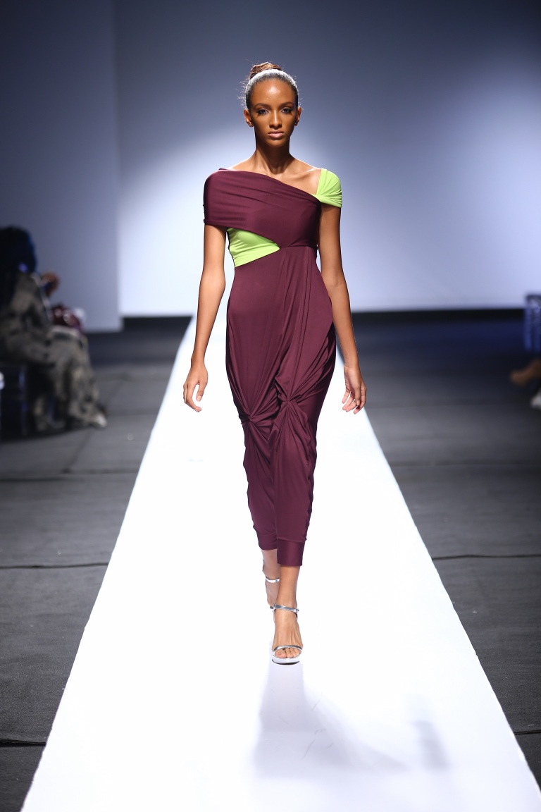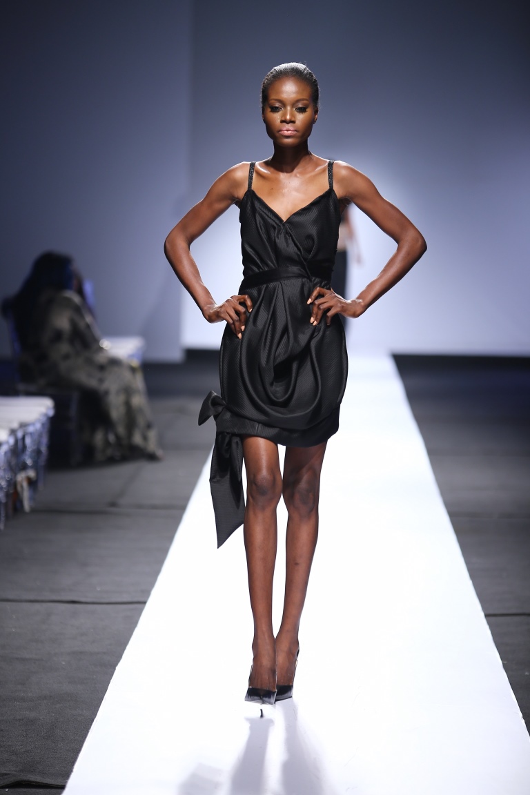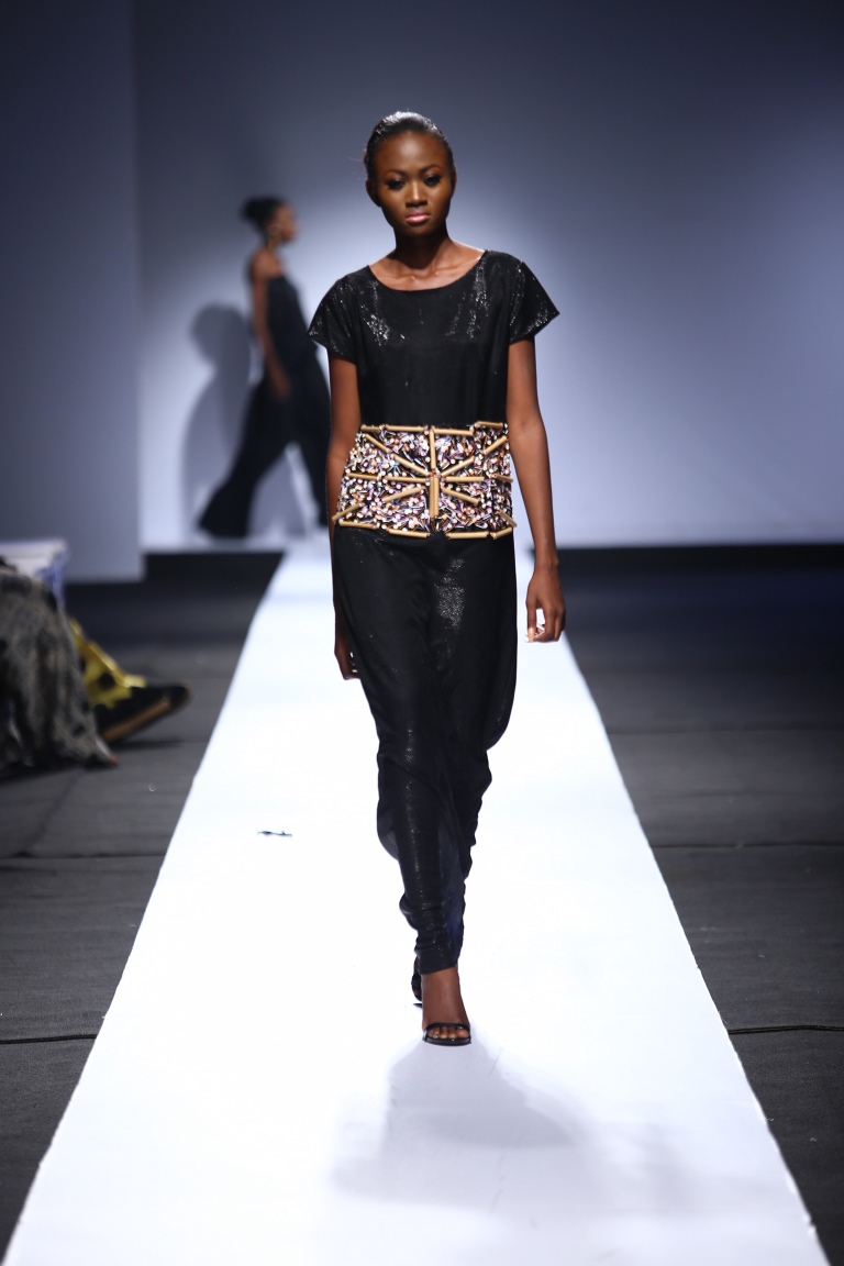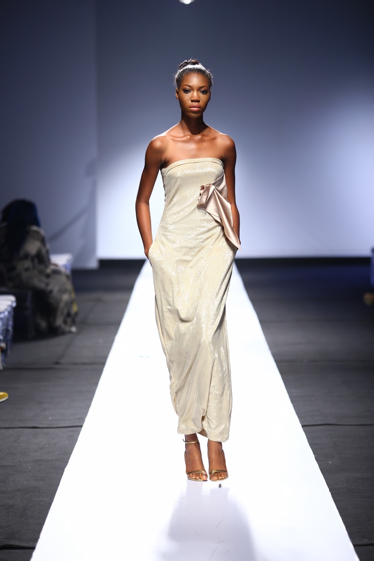 The brand showcased yesterday at Day 1 of the Heineken Lagos Fashion & Design Week 2015, and we see some familiar and new aesthetics. There is some similarity with the placements of the embellishments and structure of the pieces with the brand’s 2014 LFDW showcase, but we also see some newness with the multicolored bodice, pleated detailing, mesh fabric inserts, asymmetrical hemlines and more.