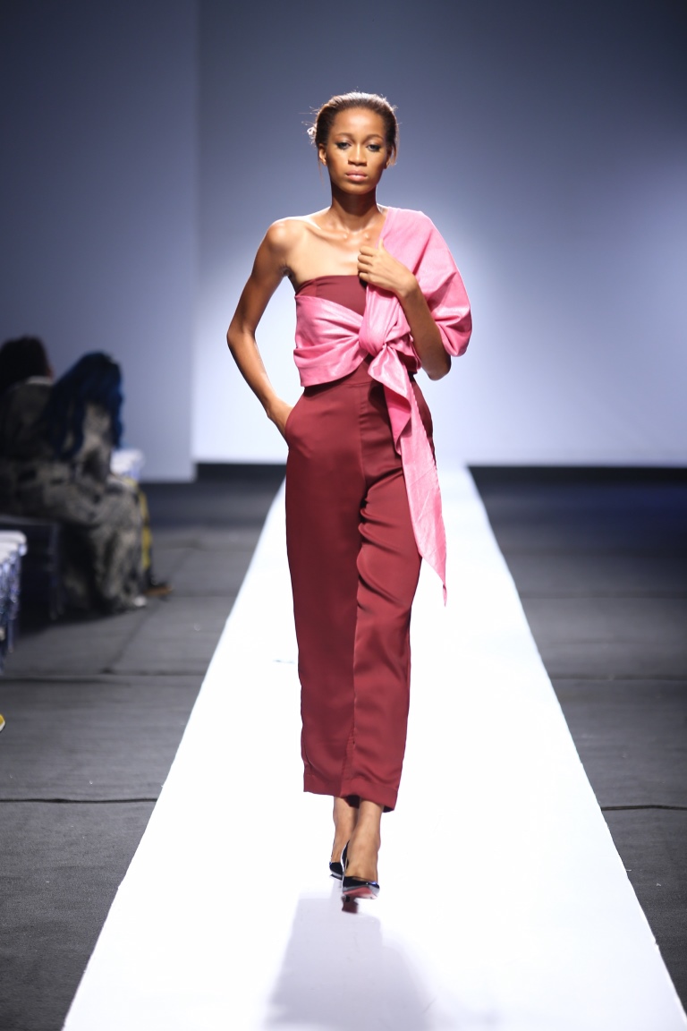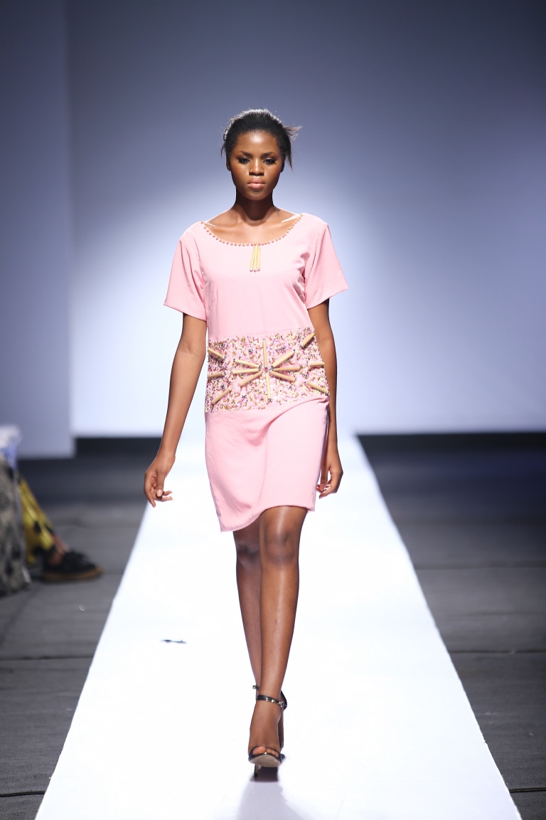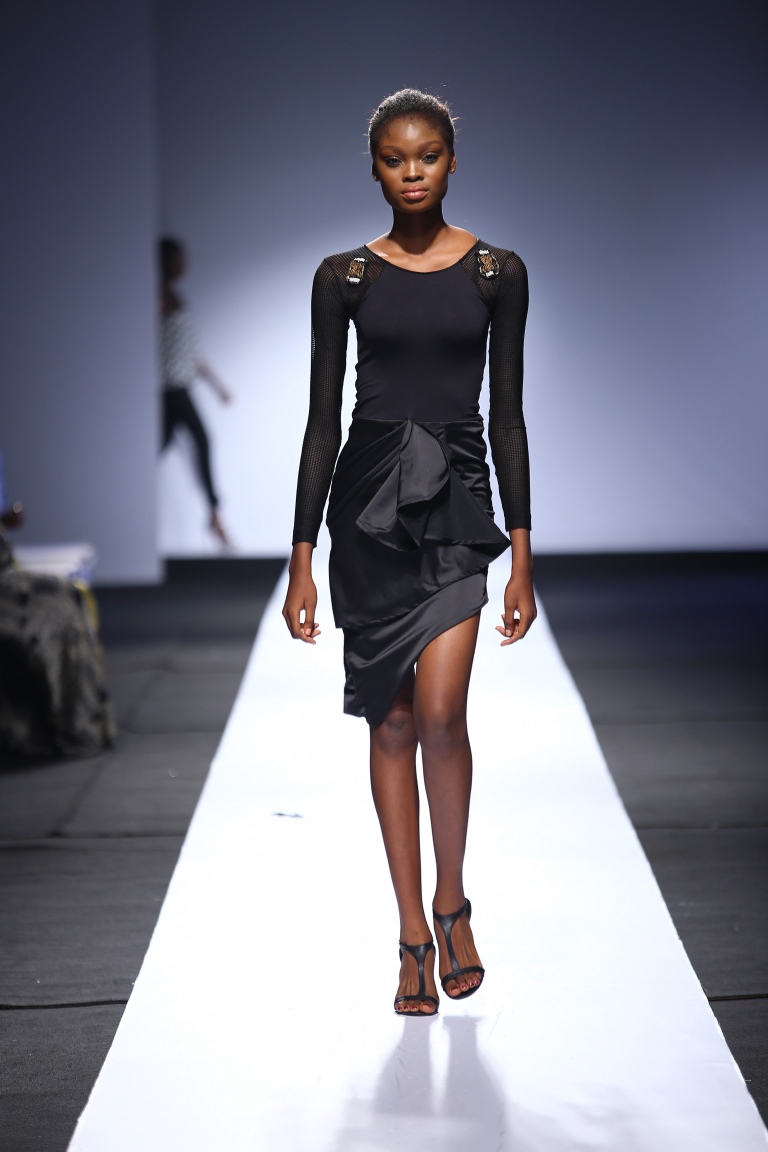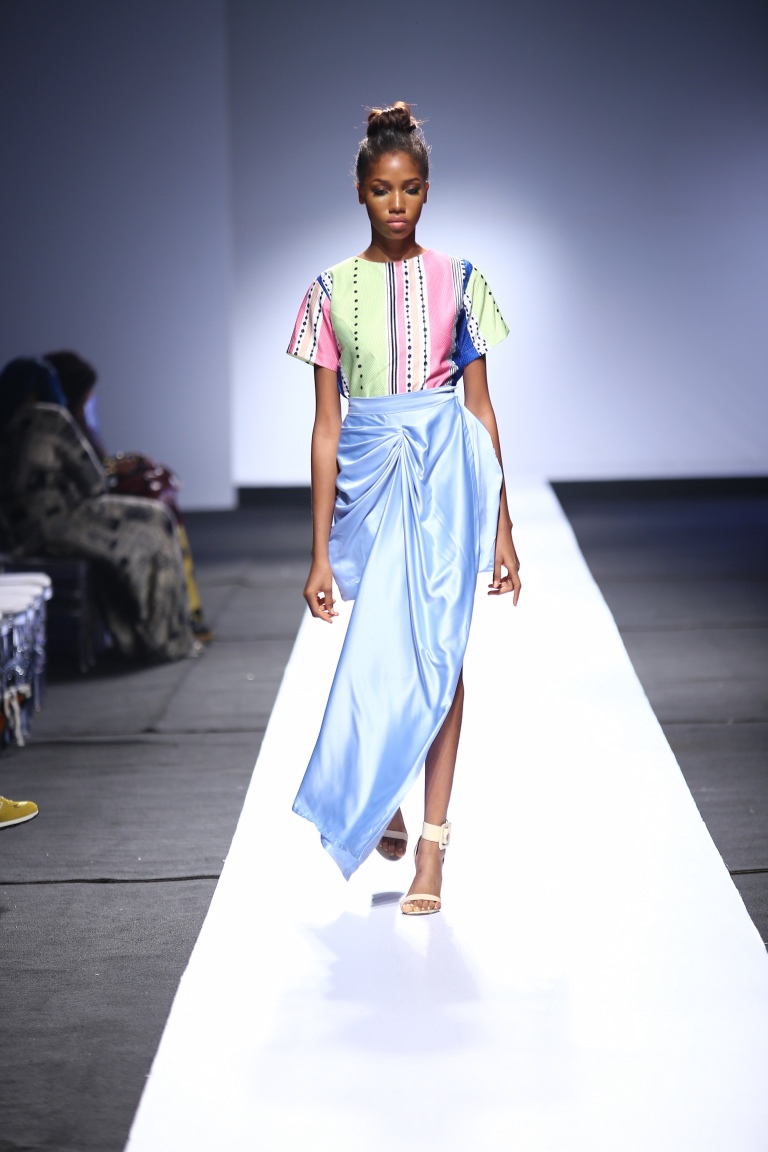 The brand showcased yesterday at Day 1 of the Heineken Lagos Fashion & Design Week 2015, and we see some familiar and new aesthetics. There is some similarity with the placements of the embellishments and structure of the pieces with the brand’s 2014 LFDW showcase, but we also see some newness with the multicolored bodice, pleated detailing, mesh fabric inserts, asymmetrical hemlines and more.