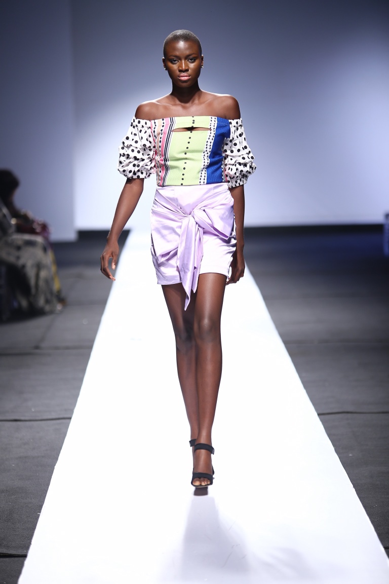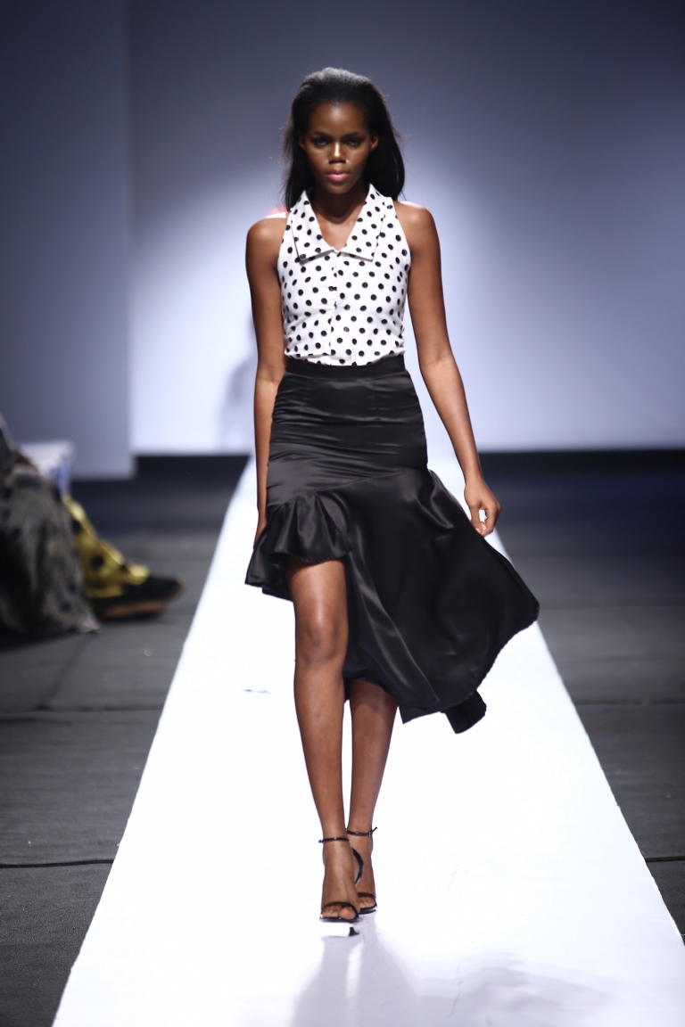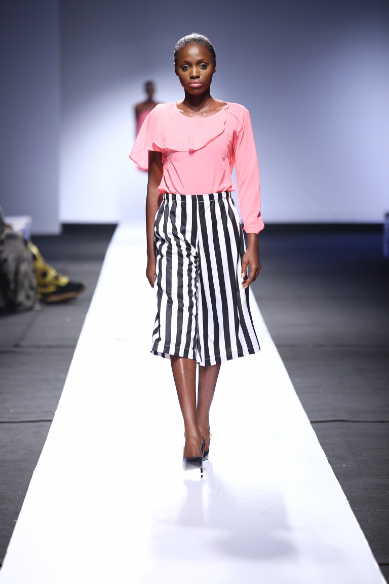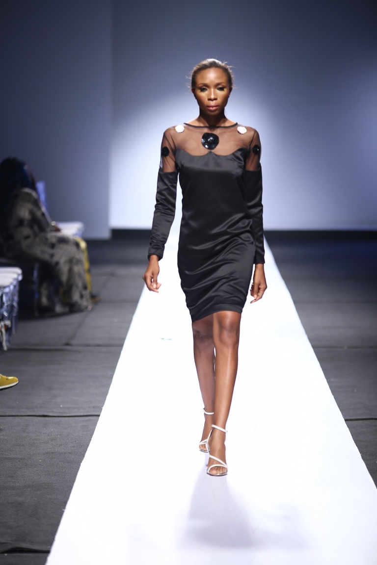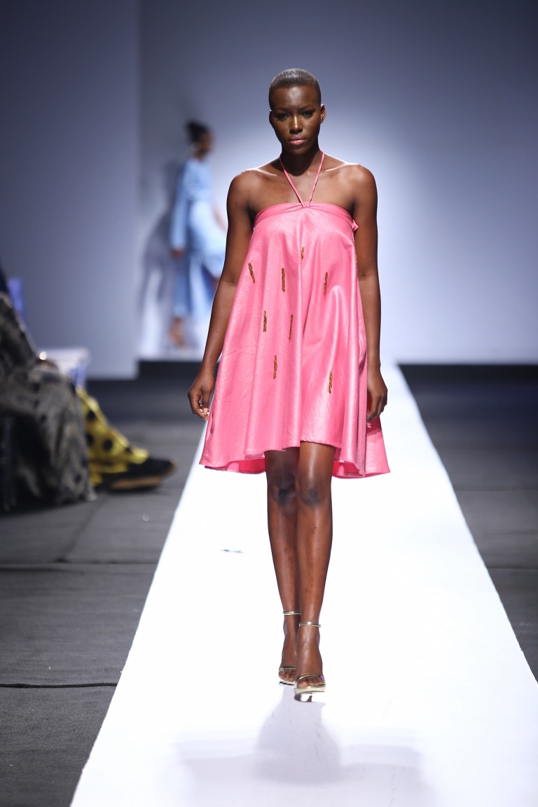The brand showcased yesterday at Day 1 of the Heineken Lagos Fashion & Design Week 2015, and we see some familiar and new aesthetics. There is some similarity with the placements of the embellishments and structure of the pieces with the brand’s 2014 LFDW showcase, but we also see some newness with the multicolored bodice, pleated detailing, mesh fabric inserts, asymmetrical hemlines and more.