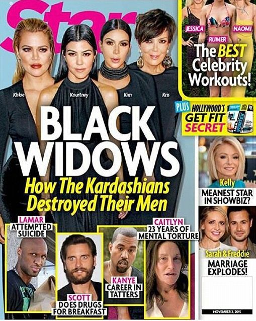 In a recent issue, they referred to the family, specifically Kim, Khloe, Kris and Kourtney as “Black Widows“, and goes on to say “How the Kardashians destroyed their men“.