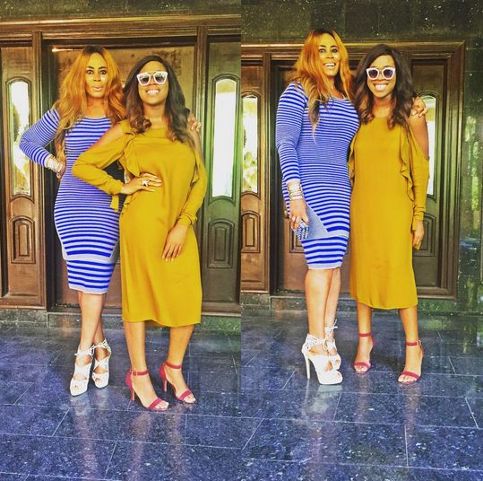 6. Kisses from me to you! We love this adorable photo of Nkiru and her daughter, and the ladies look stylish as always. Zina rocked a beautiful embellished dress in blue, and Nkriu went for a more demure colour for her outfit.