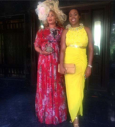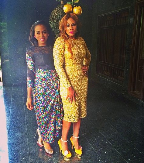 1. This is one of our favourite photos of the pair. Zina looks very chic in an ‘iro & buba’ ensemble and heels, while her mum, Nkiru, looks bright in a gold dress, yellow shoes and a gold cherry head accessory.