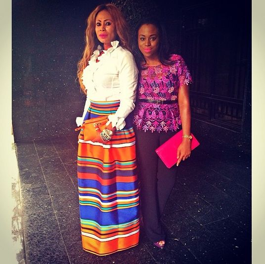 8. Nkiru and her daughter spent some time together at a fashionable event, looking very chic. We love Zina’s laid back style which consisted of a blazer, a casual top and a basic skirt; and Nkiru looks pretty in a white, red and black dress with a matching clutch.