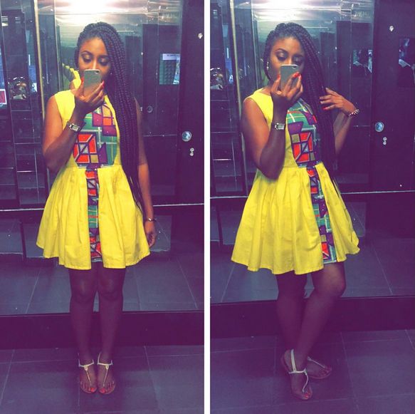 To attend the CLAN shopping party which took place over the weekend, Kaylah wore the fashion brand’s yellow skater dress from the collection, paired with white sandals and a cute black sling strap clutch.
