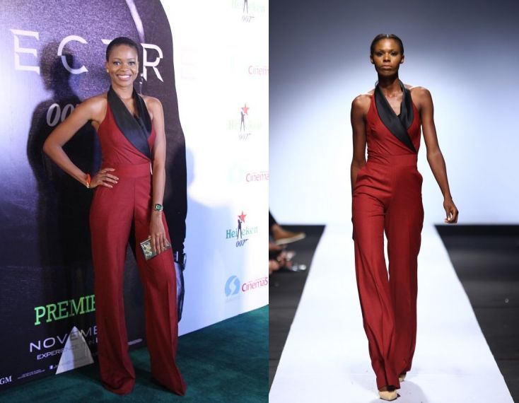 Zainab dressed for the occasion in a tailored jumpsuit by Mai Atafo, which features overlapping lapels that flow into a halter neck, a cinched waist band and flowing legs. We think she would make a fab Bond Girl. See more images below;