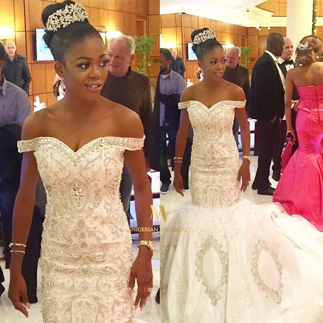 Her ring-bearer and flower girl were her close friend Toyin Lawani‘s children.