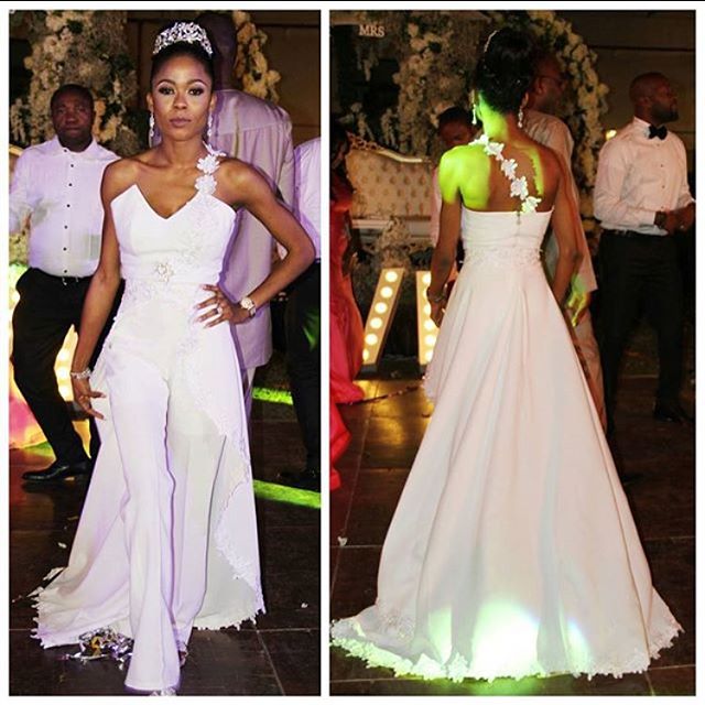 Mariam wore two outfits for her white wedding, a ball gown and a jumpsuit.