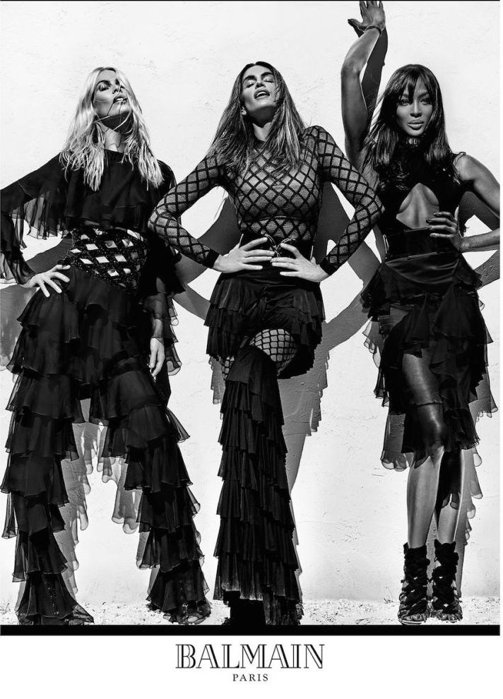 For Balmain by Olivier Rousteing‘s Spring/Summer 2016 campaign, 3 super models – Naomi Campbell, Cindy Crawford & Claudia Schiffer, ensure the campaign is sizzling hot.