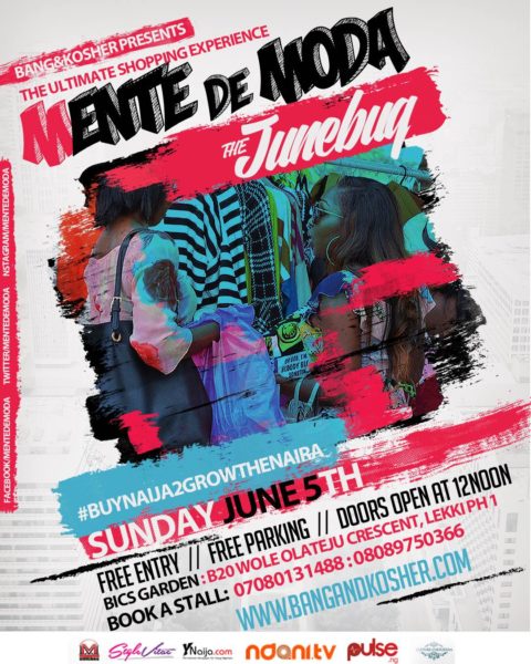 It’s about time for The Bang & kosher team to bring you yet another edition of your favorite shopping experience in Lagos – Mentedemoda!! With Mentedemoda, it gets better after every exhibition and we can proudly say that the JUNE BUG EDITION (June 5th ) will be our best and most explosive edition yet.