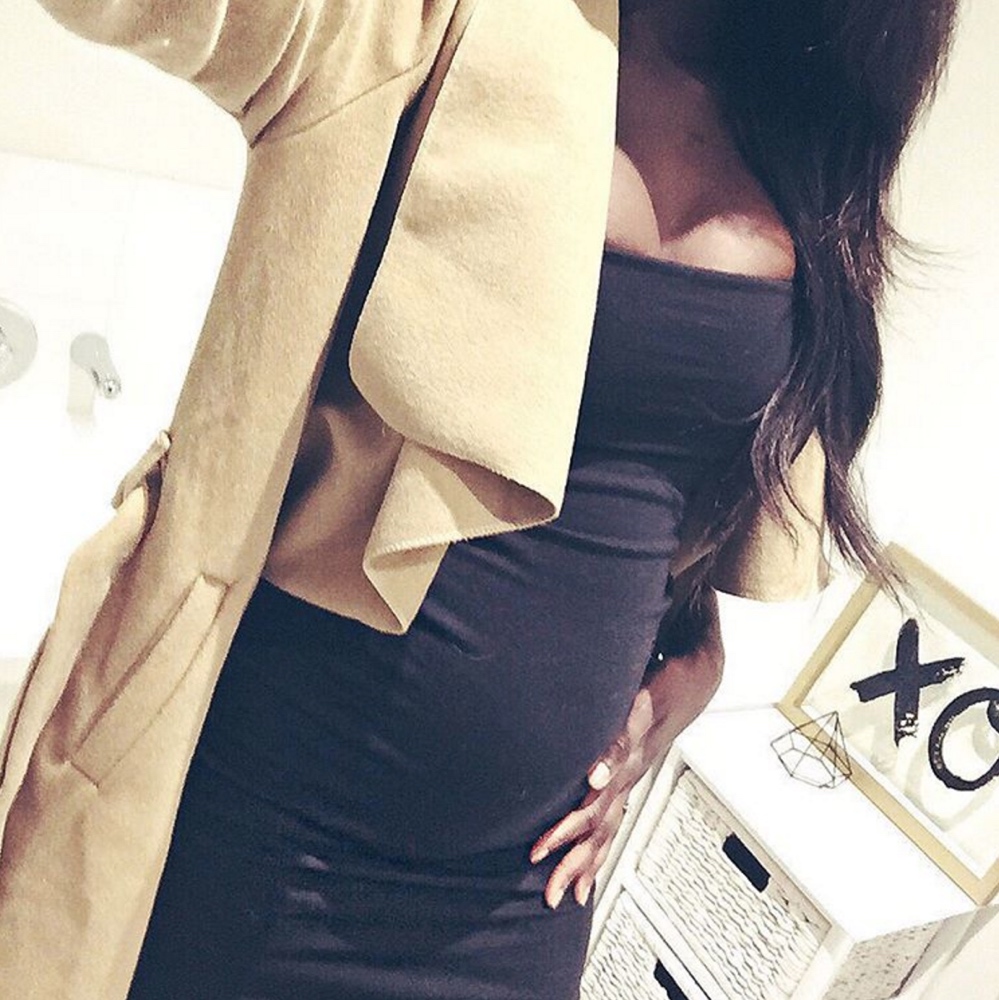 • Don’t be afraid to wear bodycon dresses and feel sexy with your body just remember to be tasteful about it. If you’re a beginner with this, try a bodycon dress in a dark colour and a maxi length. The colour and length reduces attention on your bump.